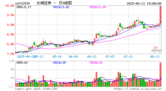 作为券商板块领涨股——长城证券13日10时47分突然异动拉升,仅用时9分钟,即封死涨停板,全天换手率为3.17%,成交额较前一日显著放大。